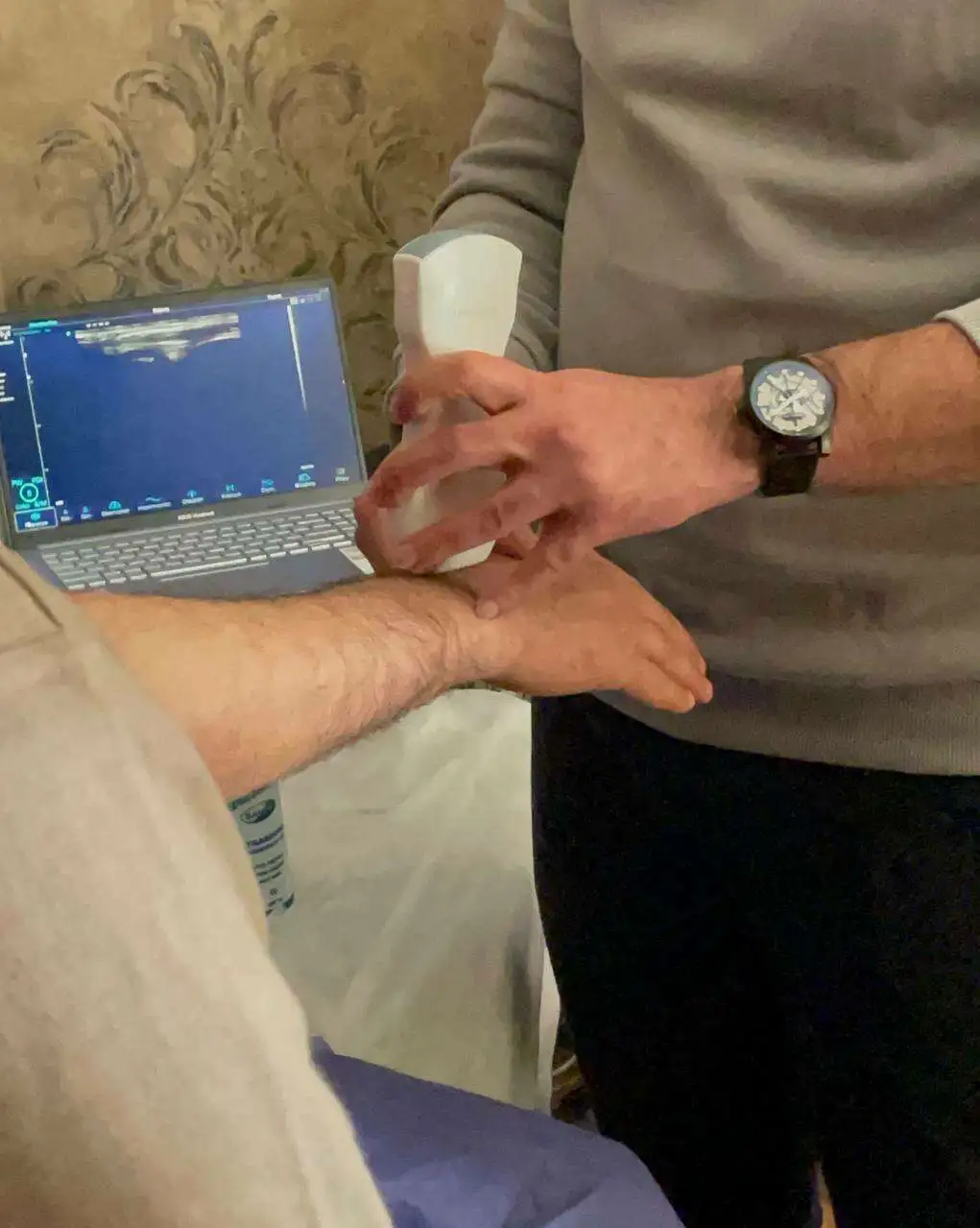 همچنین در این بخش، حتی با استفاده از سوزنهای مخصوص فیزیوتراپی، به تشخیص و ارزیابی تریگرپوینتها تحت گاید سونوگرافی پرداخته شد تا در صورت وجود آنها، امکان برنامهریزی و انجام درمان بهصورت دقیق و هدفمند فراهم باشد و به صورت لایو در جلسه انجام شود .