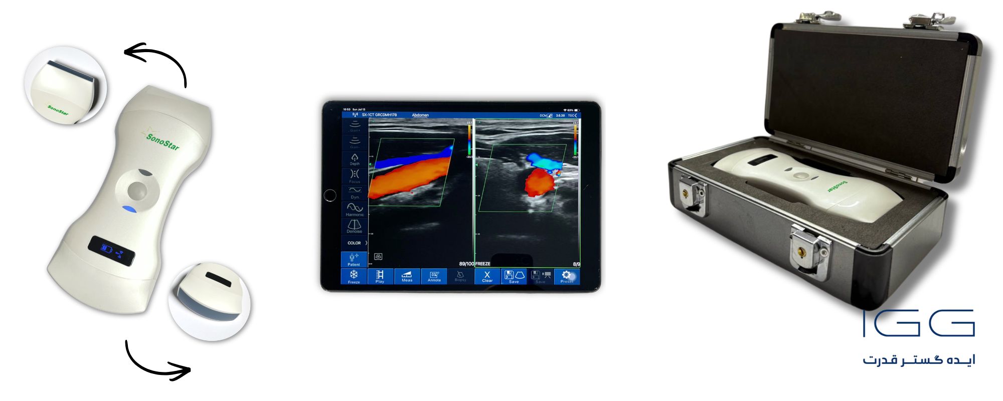این دستگاه یک مبدل اولتراسوند بی سیم است که از سه پروب در یک دستگاه واحد تشکیل شده است. زمانی که به هر یک از مبدل های خطی، منحنی و یا قلبی برای تصویربرداری پزشکی نیاز باشد، میتوان از این دستگاه استفاده کرد. همچنین دستگاه های سونوگرافی برند سونو استار، با تمامی گوشی و تبلتهای اندروید یا آیفون و حتی لپتاپ و ویندوز جهت نمایش تصاویر REAL TIME سونوگرافی سازگاری دارند.