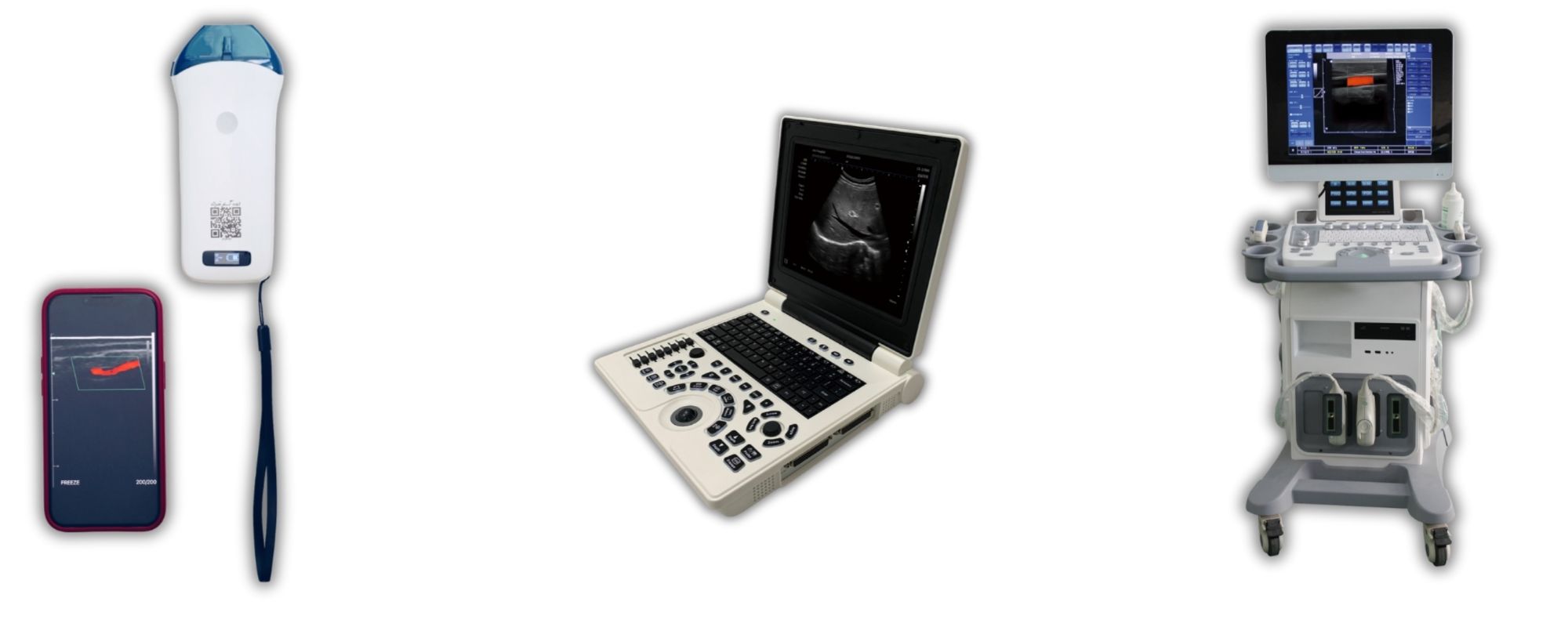 سونوگرافی موبایل یا هندهلد (Mobile / Handheld Ultrasound): این دستگاهها نسل جدیدی از فناوریهای تصویربرداری هستند که به دلیل وزن بسیار کم (حدود 250 تا 400 گرم)، اندازه جیبی و اتصال بیسیم به گوشی، تبلت، لپتاپ و یا مانیتورهای مدیکال، امکان استفاده در محیطهای سیار، کلینیکهای کوچک، یا در بازدیدهای میدانی را فراهم میکنند. این دستگاه ها قابلیت حمل بالا، وضوح تصویر و امکانات نرمافزاری بسیار مناسب و کاملی دارند، و معمولاً برای تشخیصهای سریع (POCUS) بهکار میروند.